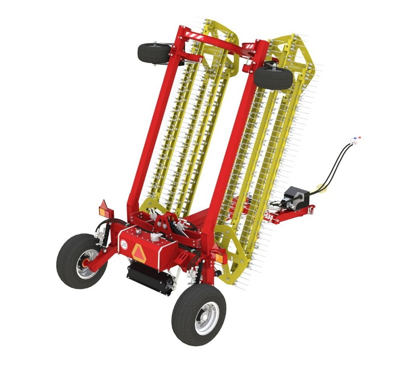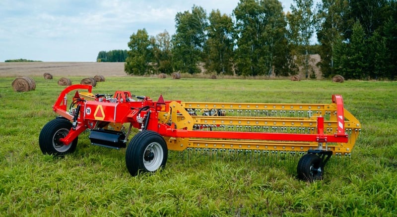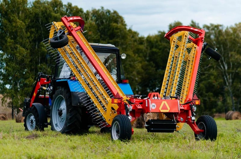 - Ширина валка в 120 сантиметров делает эти грабли идеальными для работы с различными пресс-подборщиками, что упрощает процесс заготовки и транспортировки корма.