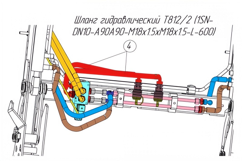 Шланг гидравлический для фронтального погрузчика Метал Фах Т812/2 (1SN-DN10-A90A90-M18x1.5xM18x1.5-L-600)