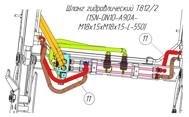 Шланг гидравлический Т812/2 (1SN-DN10-A90A-M18x1.5xM18x1.5-L-550)