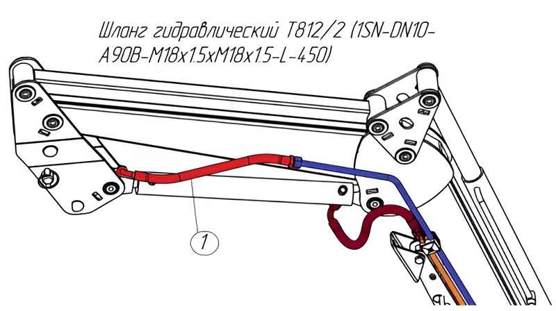 Шланг гидравлический Т812/2 (1SN-DN10-A90B-M18x1.5xM18x1.5-L-450)