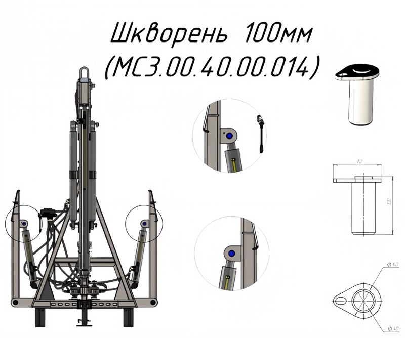 Шкворень 100мм MC3.00.40.00.014 на кран манипулятор Метал-Фах СЛОН